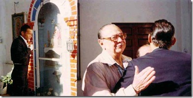 Curro Girón se encomienda en sus oraciones a la Virgen de Coromoto, durante un festival en el Nuevo Circo de Caracas y saluda a su gran amigo don Florencio Gómez Núñez. Año 1985. (Archivo: Hnos. Dupouy Gómez).